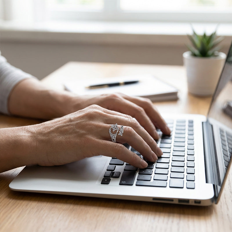 NASTAVITELNÝ OTEVŘENÝ DESIGN: Díky praktickému otevřenému designu lze tento prsten jemně nastavit tak, aby perfektně seděl na většinu velikostí prstů. To zajišťuje pohodlné a bezpečné nošení bez nutnosti přesného určování velikosti.